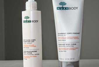 L'autre jour, je suis allée faire un petit tour dans ma parapharmacie E.Leclerc comme j'en ai l'habitude. Et pour une fois, j'ai voulu "ne-pas-faire-le-mouton" et tester des produits dont je n'avais jamais entendu dans la beautysphère. J'ai donc regardé les produits de plusieurs marques et tout d'un coup je tombe sur Nuxe ; je n'ai aucun produits de cette marque et c'est tout naturellement que je me suis tournée vers la gamme Nuxe Body. Et là, oh mon dieu, j'ouvre le tube d'un gommage et je le sens et là : le COUP DE CŒUR ! Ce gommage est aux pétales de fleurs d'amandier et d'oranger et franchement, c'est une tuerie cette odeur ! J'ai donc voulu prendre le lait hydratant qui allait avec.Donc après, toute contente, je prends mes deux produits et je passe à la caisse.Après tout mes tests, je vais vous parler de ces deux produits, un-à-un.Commençons par le gommage corps fondant pour toutes les peaux, son odeur est à tomber et franchement, pour moi qui ai la peau sensible, il ne me l'irrite pas. Il est très doux et c'est un réel bonheur de l'utiliser sous la douche. Le meilleur dans ce produit est qu'il laisse la peau TOUTE DOUCE ! Le rêve...