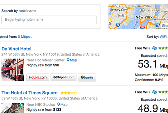 Sur le site est enregistrée et évaluée la vitesse des réseaux sans fil d’hôtels à partir du retour des clients. Cette vitesse n’est pas garantie mais est un excellent indicateur. On s’en doute : les hôtels les plus luxueux ne sont pas forcément les plus efficaces en terme de connexion à internet. Le prix d’une chambre ne reflète pas toujours la qualité de la connexion.