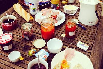 Lundi. Petit déjeuner chez des amis, nouvellement parents, c'ets vrai que dès qu'il y a un bébé quelque part les adultes ne comptent plus... je me susi régalée !