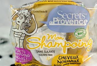 Pendant ma quête DU shampoing qui allait m'aider avec mon cuir chevelu sec, j'ai fait plusieurs boutiques bio (pour trouver le shampoing Weleda dont je vous parlais là) et je suis tombée sur la marque Secrets de Provence et leurs shampoings solides. J'avais envie de les tester depuis que je les avais vus dans une Ma Boîte à Beauté, alors, en 2 temps 3 mouvements, la version pour cheveux normaux se retrouvait dans mon panier.