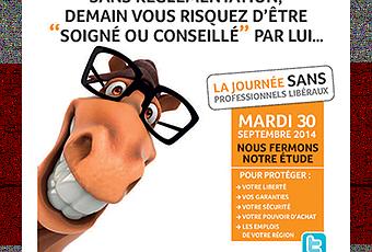 Pour riposter au projet de loi sur la déréglementation des professions libérales, l’Union nationale des professions libérales (UNAPL) appelle à une « journée sans professionnels libéraux », le mardi 30 septembre 2014. Les professionnels de santé, visés par de nombreuses mesures, ont suivis rapidement. A ce jour, les pharmaciens, la quasi-totalité des syndicats de médecine générale, mais aussi les ophtalmologistes, les dentistes et les infirmiers libéraux, sont mobilisés.