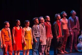Parmi les numéros individuels on reste suspendus aux gestes de l’artiste, tandis qu’il joue avec notre perception et notre attention. Ainsi donc dès le début nous sommes entrainés par Diane-Renée, formidable danseuse et accrobate, qui nous enjoint à la suivre au fil de ses pas de flamenco, plus haut dans les hauteurs de son trapèze. Avec grace, elle transforme un simple tissu en jupe ondoyante, dans le mouvement circulaire qu’elle impulse. Nous retenons tout autant notre souffle pendant le numéro magnifique d’équilibriste de Marie-Eve Dicaire, puis suivent ceux de Molly Saudek, funambule et ceux très poétiques de Sandrine Juglair perdue dans des dunes de toile souple, ou du haut de son mât chinois.