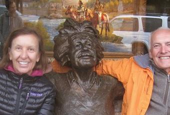 Tous se prélassent sur des bancs publics et invitent les passants à s’asseoir à leurs cotés. Nous avons choisi de nous mettre aux cotés d'Albert Einstein. Il m'a demandé: « Que penses-tu de ma théorie ? » Je lui ai répondu: « Tout est relatif ... ». Il a ricané « Ah, c'est malin ! »