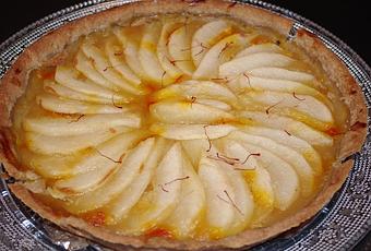 Server cette tarte froide sur laquelle vous pouvez éparpiller quelques filaments de safran pour la décoration.