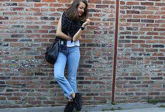 Haut: NewLook • Echarpe: Monki (ici) • Pantalon: Levi’s, trouvé en friperie • Chaussures: Creepers, trouvés en friperie • Sac: Primark • Boucles d’oreilles: Primark