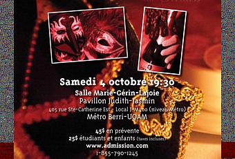 Le compagnie Opéra immédiat inaugure sa cinquième saison en ce samedi 5 octobre 2014 en présentant Die Fledermaus (La Chauve-souris) de Johann Strauss II. La distribution comprend Sophie de Cruz, soprano (Rosalinde), Marc-Antoine D’Aragon, baryton (Eisenstein), Yanick Alexandre, soprano (Adèle), Éric Thériault, ténor (Alfred), Julien Horbatuck, baryton (Falke), Julija Karakorska, mezzo-soprano (Orlofosky) et Gustave Richard, baryton (L’avocat). La mise en scène a été confiée à Frédéric-Antoine Guimond. De plus, grâce à la conclusion d’un partenariat avec l’Orchestre philharmonique des musiciens de Montréal (OPMEM), les solistes et choristes auront la chance de bénéficier d’un accompagnement orchestral. Ayant pour mandat d’aider de jeunes musiciens et musiciennes de talent à perfectionner leur jeu orchestral, l’OPMEM, créé en 2009 et dirigé par Philippe Ménard, fera ses débuts lyriques avec Opéra immédiat. Après avoir présenté ses productions au Théâtre rouge du Conservatoire de musique de Montréal et au Théâtre Rialto, Opéra immédiat occupera dorénavant la scène du Théâtre Marie-Gérin-Lajoie de l’Université du Québec à Montréal (UQÀM). Le théâtre se trouve au pavillon Judith-Jasmin de l’UQAM qui est situé au 405, rue Sainte-Catherine Est à Montréal. Une seule représentation de La Chauve souris est prévue et aura lieu ce soir à compter de 19 h 30.