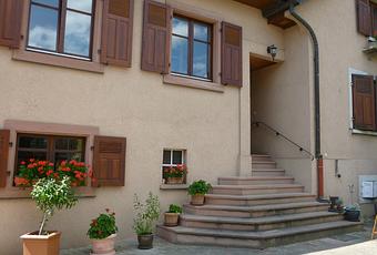 Notre emploi du temps de la fin d’après midi du vendredi 30 mai 2014, nous laissait une plage de temps libre. Nous avons téléphoné au domaine qui nous a proposé de venir déguster. Ce long week-end de l’Ascencion est particulièrement prisé par les touristes et amateurs de vins alsaciens venant de nord de l’Europe, nous avons dû attendre une demi-heure, dans la bonne humeur et sous un beau soleil que des amateurs des Pays Bas aient terminé leur dégustation pour pouvoir accéder à la petite salle réservée à cet usage. La propriété fonctionne sur un modèle proche de certains domaines bourguignons : peu à pas de vins à vendre, mais on peut goûter. Ce fut le cas pour les Riesling issus du Sommerberg qui étaient épuisés à la vente, mais dont nous avons pu goûter deux cuvées.