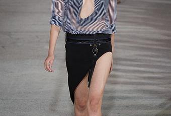 RayuresA la base de tout, est la ligne. Ligne droite, pure, rassurante, elle commence tout dessin, toute réflexion aussi. Et loin de se contenter d’une seule, les créateurs ont décidés de jouer avec, de les multiplier, de les détourner, de les transformer. Rayures XS, ultra fines, presque fondues dans le tissu - comme les blouses en mousseline de soie effet marinière chez Anthony Vaccarello - ou au contraire XL, volontairement exagérées – comme chez Cédric Charlier, en cuir tressé pour la dernière collection du styliste Christophe Lemaire pour la maison Hermès, en mousseline de soie graphique et chic chez Givenchy ou encore chez Sacai qui associe l’esprit marinière aux dentelles et guipures romantiques - les deux styles cohabitent et se complètent.