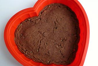 Répartir la pâte dans le moule silicone coeur tressé Pavonidea (FRT184), en prenant soin de bien tasser et lisser le dessus.... afin d'obtenir un beau résultat au démoulage.