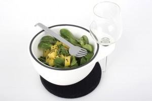 Un petit objet amusant et très pratique, pour tous les amoureux des petites encas devant la télé. Imaginé par Lina Meier, il vous permettra de vous restaurer sans risque de renverser votre verre. Ce bol astucieux, offre la possibilité d’accueillir un verre à pied, qui sera solidement maintenu.