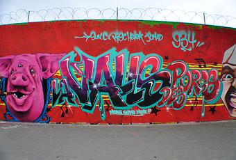 Classé dans:Experimental, France, Graffiti, Paris, Photo Tagged: 75018, cochons, fresque, Graffiti, Helek, Jomad, La Valls des Porcs, Merde Quand Même, Paris, Photos, politique, porc, Risc, rose, rue Ordener, street, Street Art, Sun.C