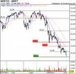 Meetic perd plus de 50% par rapport à l'année 2007 où son taux était de 33 euros. Concernant, la publication d'une hausse de son chiffre d'affaire de 25% au 1er trimestre 2008 semble rassuré les courtiers. cf billet CA +25%