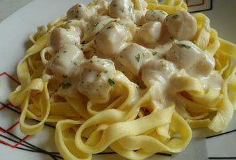 Un petit plat à proposer sur vos tables de fêtes, des noix de saint jacques flambées et à la crème accompagné de pâte fraiche. J’en ai l’eau à la bouche !
