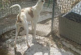 Cette pauvre podenca toute jeune encore puisque 2 ans,un peu squelettique