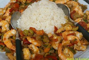 Et oui encore des Poivrons-Oignons-Tomates, Dans ma Cuisine ... Là, j'ai eu envie de les marier à des Crevettes ... Bon "Fils Chéri" a dit que même si mon sachet de chez Picard portait le nom de "Légumes à la Basquaise", cela ne faisait pas franchement "Basquaise" ... En même temps le plat était réussit et bon, donc peut importe ... En plus avec mon paquet de Légumes surgelés, cette recette a été réalisée en moins de 15 minutes ...