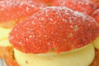 Étaler la pâte sur 3/4 mm d’épaisseur entre 2 feuilles de papier sulfurisée et découper 8 disques de 4 à 5 cm de diamètre selon le diamètre de vos choux.