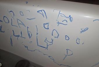 Lola qui apprend à écrire son prénom (pas encore super au point mais elle n'aime pas trop le graphisme )