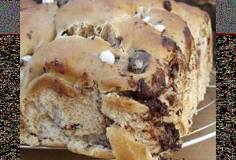 Ajouter les oeufs et l’huile d’olive. Pétrir doucement avec le crochet. Ajouter le lait au fur et à mesure jusqu’à obtenir une pâte lisse. Ajouter alors le sel et les pépites de chocolat.