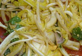 coupez vos pissenlit dans un plat a salade. ajoutez les oeufs et tout les incrédient.