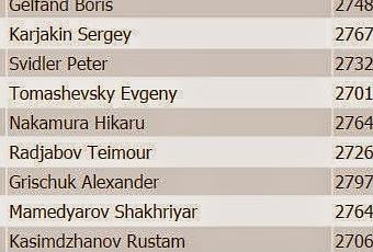 - Shakhriyar Mamedyarov (2764) - Rustam Kasimdzhanov (2706)