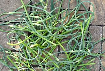Une partie de notre récolte des fleurs d'ail en juillet dernier
