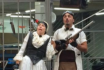 Autant le dire tout de suite, ce qui est intéressant dans ce spectacle, c'est d'une part qu'il est présenté devant le théâtre (il aurait pu l'être dans le théâtre mais qui serait venu le voir ?), et d'autre part que la structure est assez intrigante pour qu'on s'arrête et qu'on regarde et qu'on essaie de suivre le récit des aventures d'Afonso et Victoria à travers les siècles. Un couple, venu du passé (au temps où la photographie s'invente), tente d'arriver en 2014. Pourquoi 2014 ? On ne sait pas, peut-être simplement parce que c'est aujourd'hui... Leur maison sans murs tourne sur elle-même, souffle, sonne, fait de la musique. Et s'arrête parfois, pour découvrir le paysage, un paysage de bruitages où l'on reconnaît divers épisodes de l'humanité, souvent des guerres, c'est toujours la même chose l'humanité. Jusqu'à arriver au but, et tous les enfants de crier "oui, c'est deux mille quatorze !", comme si 2014 était un havre de paix. A l'Agora d'Evry, ce jour-là, devant le théâtre, c'était le cas.
