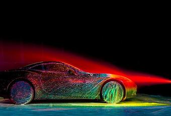 Et pour boucler la boucle et mettre en avant toute la splendeur du modèle « California T » qui verra le jour en 2015 , l’effet de vitesse a été créé grâce à la propulsion de la peinture à une vitesse allant jusqu’à 240 km/h, ce qui recrée cette sensation d’accélération, bien connu de ses célèbres bolides. Splendide !