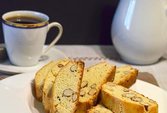 Les biscotti, croquants ou croquets sont des biscuits secs nature ou aux amandes.Ils sont appelés biscotti ou biscuits parce qu'ils sont cuits 2 fois.Ils sont toujours servis avec un café ou un alcool dans lequel ils sont trempés avant d'être dégustés.Je vous ai déjà présenté la version française (ici) et la version algérienne (ici).Aujourd'hui, je vous propose une des versions italiennes : les biscotti de Toscane. Dans un premier temps, j'ai réalisé la recette telle qu'elle était donnée (sans gras et sans levure).Une fois refroidis, j'ai trouvé les biscuits très durs. Il est vrai qu'ils retrouvent rapidement leur moelleux, une fois trempés dans le café ou le thé.J'ai préféré les refaire en rajoutant du beurre et de la levure chimique.Résultat : des biscuits croustillants, croquants, délicieux avec ou sans liquide.A vous de choisir la version qui vous tente le plus.Il est important d'utiliser un couteau à dents pour découper les pains de biscuits. Cela leur évite de se casser.L'utilisation d'amandes entières dans les biscuits leur donne encore plus de croquant.J'ai utilisé des amandes Samia, originaires des USA . Elles sont grandes de tailles avec un petit goût sucré. Leur taille facilite le découpage.Si la pâte colle trop, travaillez le façonnage en farinant vos mains et le plan de travail.