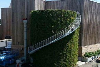 Dans le cadre de la construction de son nouveau bâtiment de stockage, la cuve des eaux de sprinklage a été habillée d’une couverture végétale. Constituée de panières plantées d’espèces régionales, cet habillage de 200 m2 permet de restaurer la biodiversité de proximité.