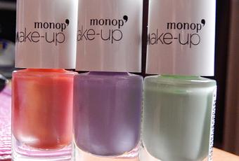 Aujourd'hui je vais vous parler de petits vernis aux couleurs trop jolis et pour un prix mini !Il s'agit des vernis de la marque Monop' make-up que vous trouverez donc chez Monoprix :)