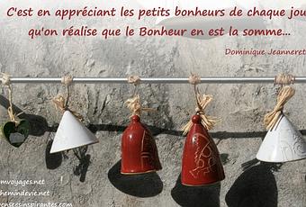 C’est en appréciant les petits bonheurs de chaque jour qu’on réalise que le Bonheur en est la somme… – Dominique Jeanneret