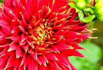 En témoigne ce Dahlia avec son rouge violent et ses formes harmonieuses qui capte tellement le regard que les autres fleurs qui l'entourent font désormais pâle figure...