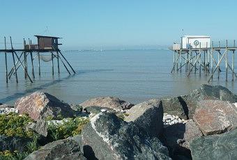 Le 1er octobre, 2ème jour de vacances, nous partons à YVES au bord de la mer et nous découvrons quelques carrelets (petites cabanes de pêcheurs). L'endroit est bien agréable. Nous ne rencontrons qu'un camping-car et deux personnes qui se promènent au bord de la mer. Le soleil brûle déjà mais le vent nous rafraîchit.