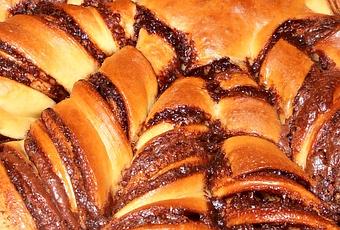 Le principe est simple : une pate à brioche divisée en 4 patons que l'on étale en disques, surlesquels on étale du nutella et que l'on torsade pour lui donner un bel aspect.