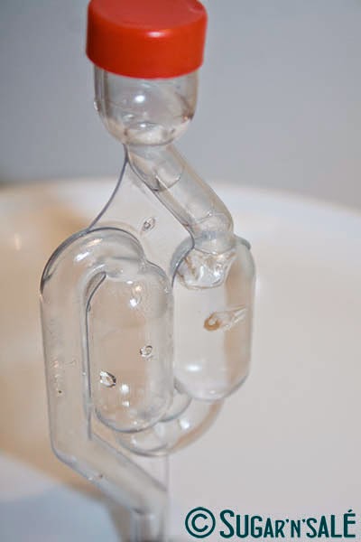 Voila une grande première étape franchis et c'est la plus compliqué. Il ne vous reste plus qu'à refermer votre sceaux et d'y placer le barboteur. Le barboteur sert à laisser dégazer votre mélange tout en le protégeant des bactéries, levures et autres impuretés volatiles.