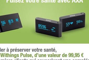 Une collaboration qui se prolonge au travers des contrats proposés par le groupe Axa. En effet, celui-ci propose aux mille premiers souscripteurs de sa complémentaire santé Modulango, de recevoir en cadeau le bracelet connecté Withings Pulse et des chèques-cadeaux en fonction du nombre de pas parcourus dans le mois.