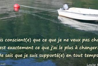 Je suis conscient(e) que ce que je ne veux pas changer est exactement ce que j’ai le plus à changer. Je sais que je suis supporté(e) en tout temps. – Louise Hay