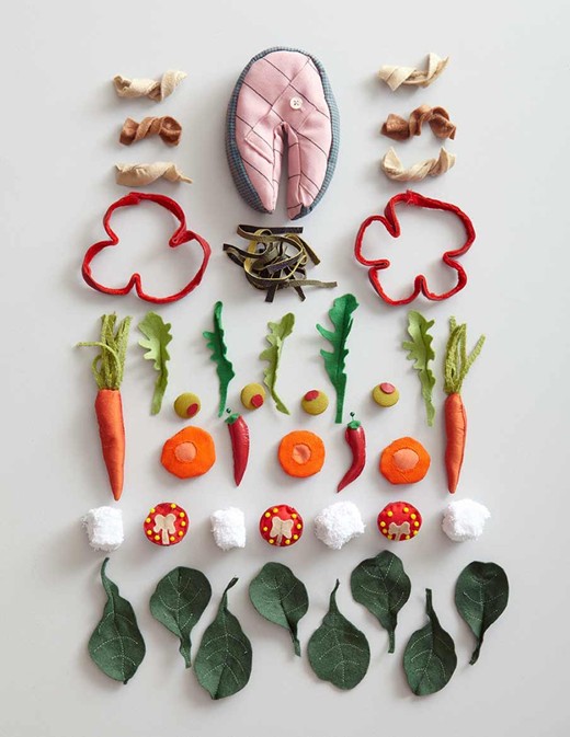 La très talentueuse Anna Lomaxa réalisé une série de plats appétissants entièrement en tissu, cousus main, et photographiés par Victoria Ling. De l'oeuf au plat, jusqu'au steak de thon grillé et ses petits légumes, au détail de fanes de carottes et de tomates cerises, on y croirait presque!The very talented Anna Lomax made these amazing handmade fabric meals, photographed by Victoria Ling. From the fried eggs to the grilled steak and detailed carrot stalks leaf or those cute cherry tomatoes, we can almost believe it!