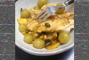 Trop bon ce poulet accompagné avec des raisins qui sont, vous en conviendrez, un fruit de saison. Et c’est vrai que les raisins ils s’abiment assez vite, alors ce plat est parfait pour recycler une grappe qui commence à ramollir… Vous pouvez le faire avec du poulet déjà cuit mais évidemment la viande sera moins imprégnée du bon goût de la sauce. Et puis ce qu’il y a de bien c’est que ce plat peut se préparer à l’avance et se faire réchauffer, ce qui rend les raisins encore plus fondants. C’est vraiment la recette idéale pour lutter contre le gaspillage alimentaire…