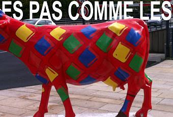 En fait, toutes ces vaches proviennent de l’exposition Land Art de la ferme Saint-Géraud en Corrèze qui, durant 4 mois chaque année, transforme une des prairies de Jacques Moulène en salle d’exposition. On peut ainsi découvrir une soixantaine de de vaches en résine réalisé par un collectif d’artistes.