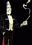 J'aimerais bien comprendre pourquoi le personnage de Monsieur Choc est toujours représenté avec un fume-cigarette alors qu'il ne peut fumer, vu la forme des ouvertures du heaume qu'il porte en permancence. Certes, il existe une image de Monsieur Choc avec le porte-cigarette planté dans sa bouche, c'est la dernière case de la planche 41 de la première histoire le mettant en scène, Tif et Tondu contre la Main Blanche. Mais c'est parce que les fentes de la mentonnière du casque étaient verticales comme on le voit ici. Ensuite, il se contentera de tenir cet instrument à la cigarette toujours aussi allumée, mais on ne le voit jamais ajuster la cigarette dans l'étui, ni l'allumer.