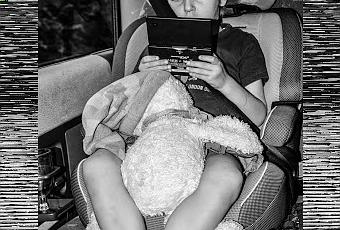 A l'ombre derrière les vitres teintées, la clim enclenchée, en train de regarder sur leurs lecteurs dvd portable les derniers dessins animés sortis.