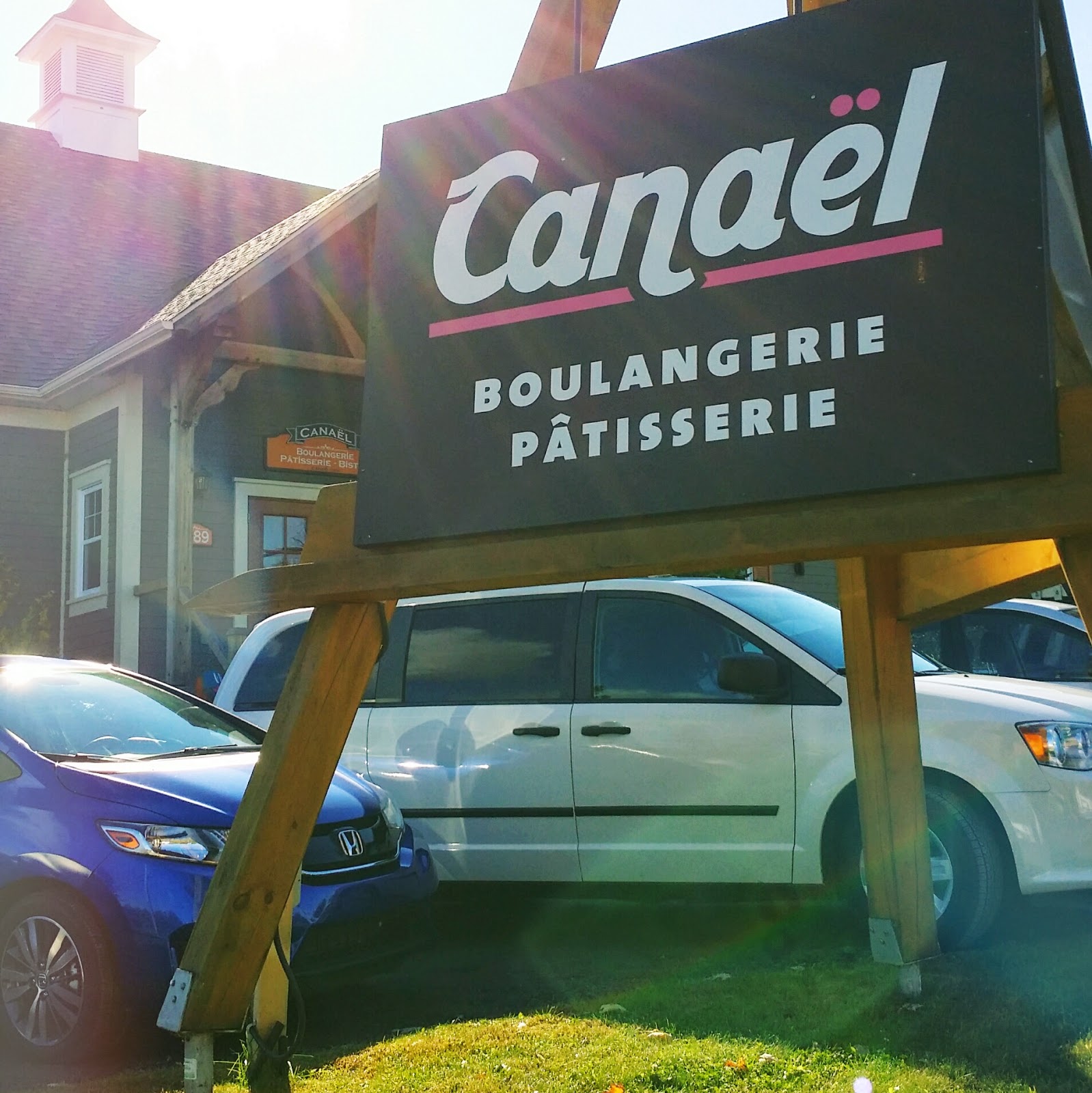 Comme nous carburons à la bonne nourriture (foodies!), le premier arrêt de la journée se devait d'être chez Canël, une boulangerie-pâtisserie artisanale. Durant le trajet Montréal-Bromont, Catherine a eu le temps de se familiariser avec la nouvelle voiture. Disons que nous sommes toutes les deux complètement séduites par sa technologie de pointe... Nul besoin de clé pour débarrer la portière! Catherine glisse sa main contre la poignée et hop! Les portières s'ouvrent d'elles-mêmes. C'est moi qui prend ensuite le volant pour permettre à Catherine d'admirer le paysage automnal. En parfaite fille urbaine, Catherine bombarde les montagnes de clichés en soupirant: "Ah que c'est BEAU la campagne l'automne!!!"