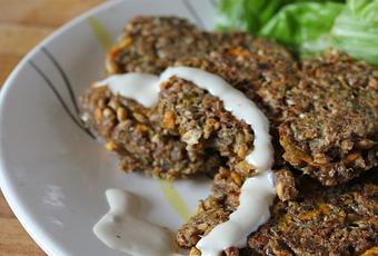 La veille mettre les grains de céréales à tremper dans un saladier. Laisser reposer toute la nuit pour une prégermination qui va rendre les céréales plus digestes.Le lendemain, préparer les galettes: rincer les grains et les égoutter soigneusement. Ils doivent être à peine humides.