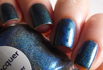 Les visuels finaux était un peu éloignés de ma demande, mais je le voyait bleu nuit profond, méga holo avec un léger shift teal. Et ça me plaisait bigrement! J'ai attendu fébrilement mon colis. Au déballage, je t'avoue, je l'ai gardé pour la fin, tellement j'avais peur d'être déçue. Et là, Wahou, paillettes dans les yeux, ruades de licornes et arc en ciel dans la maison. Juste PARFAIT, comme je l'avais demandé.Je l'ai observé tout le repas. Et dans l'aprem, flash, angoisse. Est-il un dupe de Scientealliant? Je suis rentrée et les ai posé côte à côte. Palpitation, Ohmondieu... Sans m'affoler trop vite, je l'ai posé, ouf, je peux garder les deux. Scintealliant est au moins deux teintes plus clair!