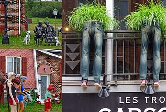 Devant les maisons de Saint Anne des Monts en Gaspésie, les humains se statufiés.
