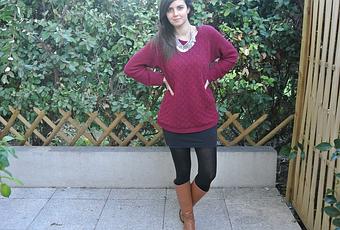 In short, today I choose to show you this sweater soft and super comfortable with a burgundy color. I like to wear it with a close-fitting cut as this skirt and my warm tights.