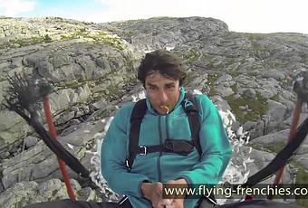 Le français Tancrède Melet de Flying Frenchies a rendu hommage au jeu vidéo Angry Birds lors d’un saut en base jump. Du haut d’une falaise, il s’est fait catapulter depuis une nacelle rembourrée de plûmes avant d’ouvrir son parachute.