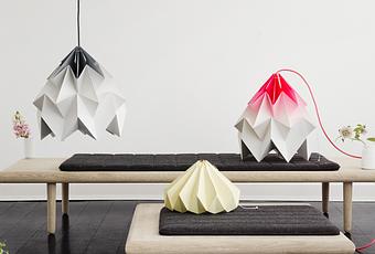 Snowpuppe est un studio de design hollandais qui propose des suspensions ludiques et poétiques en papier plié. La technique de l’Origami offre aux luminaires des effets variés liés à l’épaisseur, la transparence, la couleur et les plis du papier. Une fois allumée, l’ampoule à économie d’énergie, de rigueur compte tenu du matériaux utilisé, révèle alors les formes géométriques et le design de chaque pièce. Ceux qui me connaissent et/ou me suivent depuis longtemps sauront en plus que j’ai un passif pour ce combo origami x luminaire , souvenez-vous de Kami !