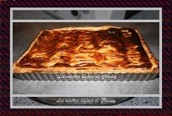 Eplucher 6 pommes, les couper en tranches fines (avec l'éplucheur à pommes on fait les deux en meme temps et c'est tres pratique). Ranger les pommes sur le fond de pate.